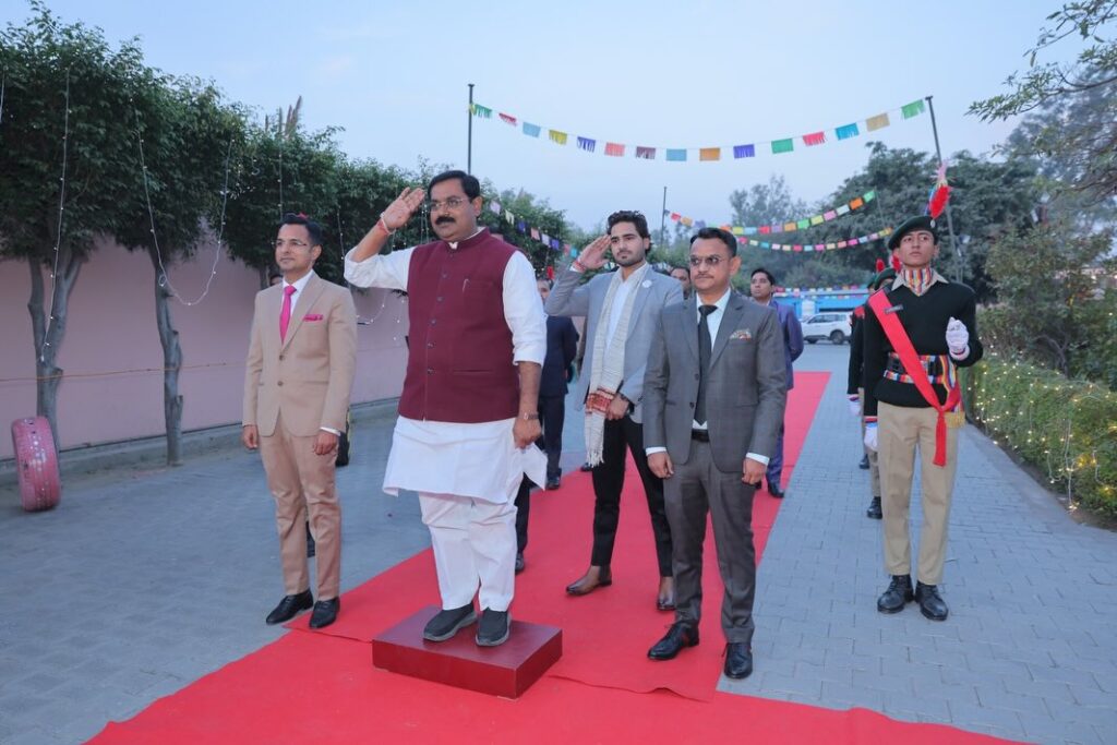 The evening commenced with the traditional lighting of the lamp by Chief Guest Shri Vikas Chauhan ji, District President Bhartiya Janta Party, Bulandshahr, School Chairman, Mr. Wasiq Azad, School President Mr. Shariq Azad, School Vice President Ms. Neha Azad and our Principals Ms. Shilpi Singh & Mr. Lalit Mohan. This was followed by the school choir’s soulful rendition of welcome song. The theme “Yugantar” came alive through a mesmerizing journey across epochs – from ancient Vedic times to the digital age – portrayed via skits, dances, and poetry recitals by students.